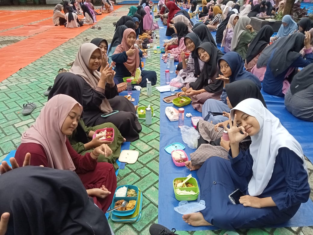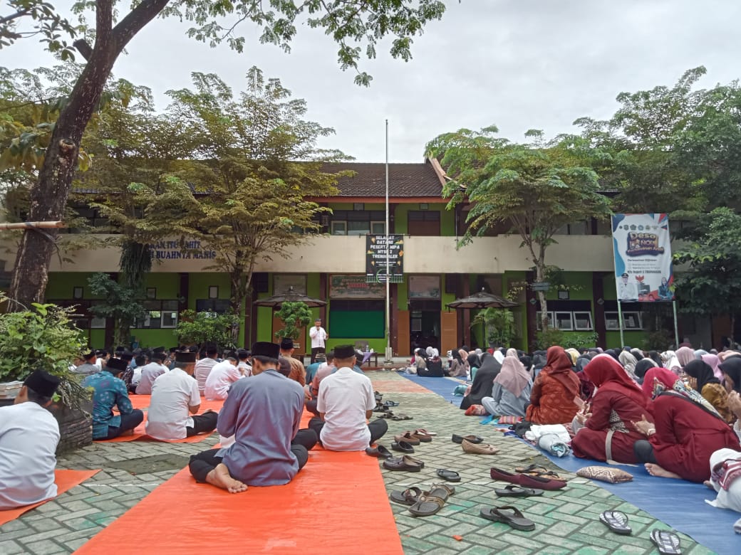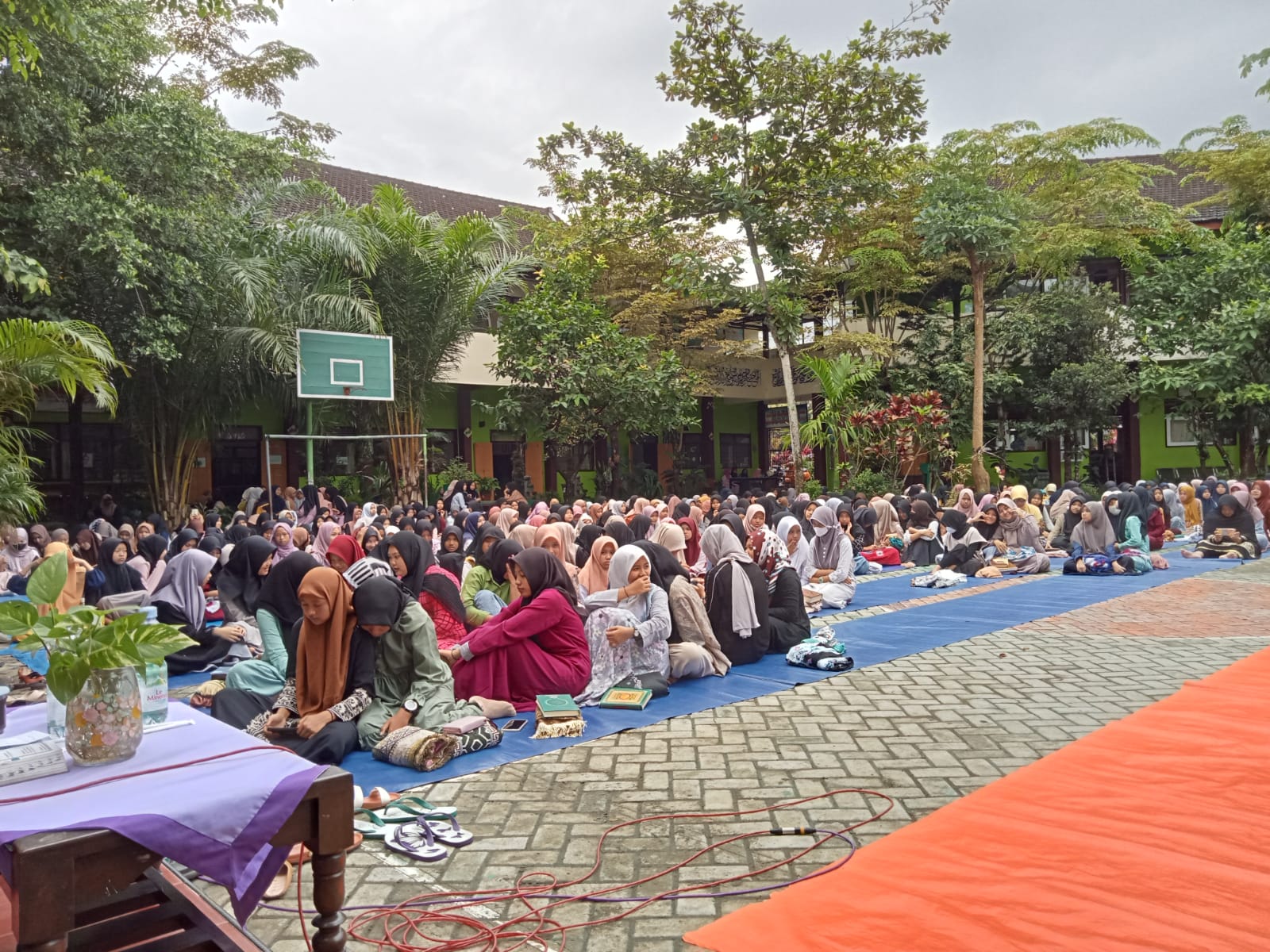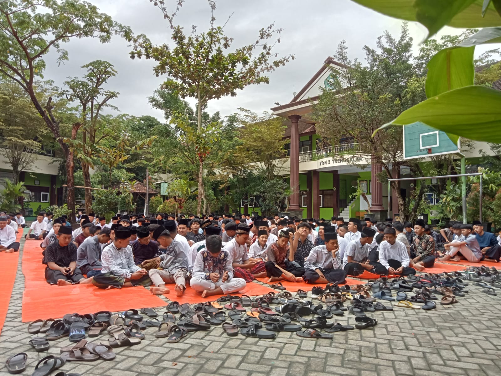 Pada hari ini, Jum'at 17 Februari 2023 atau tanggal 26 Rajab 144 H di halaman MTsN 2 Trenggalek telah dilaksanakan peringatan Isro' Mi'roj Nabi Muhammad SAW. Acara diawali dengan sholat dhuha dan dilanjutkan dengan tausiyah dari Ustd Sudarto, S.Ag (guru bahasa Arab MTs 2). Meski mendung, tidak menyurutkan semangat siswa-siswi untuk mengikuti acara dari awal hingga akhir. Ustad Sudarto mengajak para siswa-siswi MTs 2 Trenggalek untuk menjaga sholat, jika sholatnya bagus maka amal ibadah yang lain akan mengikutinya. Sholat adalah tiang agama, pahala sholat yang akan dihisab pertama kali di yaumul kiamat. Itulah hikmah yang terkandung dalam perjalanan semalam Rasul SAW dari Masjidil Haram Mekkah ke Masjidil Aqsa Palestina dilanjutkan naik ke langit shidratul muntaha bertemu Alloh yang membawa pesan perintah sholat. Demikian pesan singkat yang terkandung dalam tausiyah Ustad Sudarto, semoga bisa diambil hikmahnya buat kita semua. Setelah acara tausiyah selesai dilanjutkan dengan tampilan hadrah siswa-siswi MTsN 2 Trenggalek.